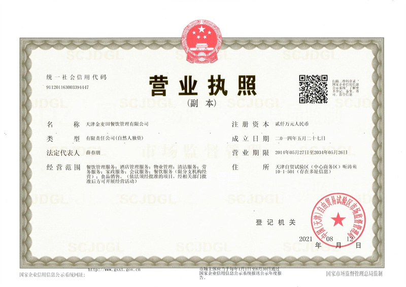 此外,天津金麦田餐饮坚持以人为本,注重人才培养。进一步加强食堂承包和快餐配送环节的各项管理。你们的信赖就是我们努力的源动力,你们的微笑将是我们进步的动力源泉,我们将一如既往的在过去、现在、未来与您一起携手并进!